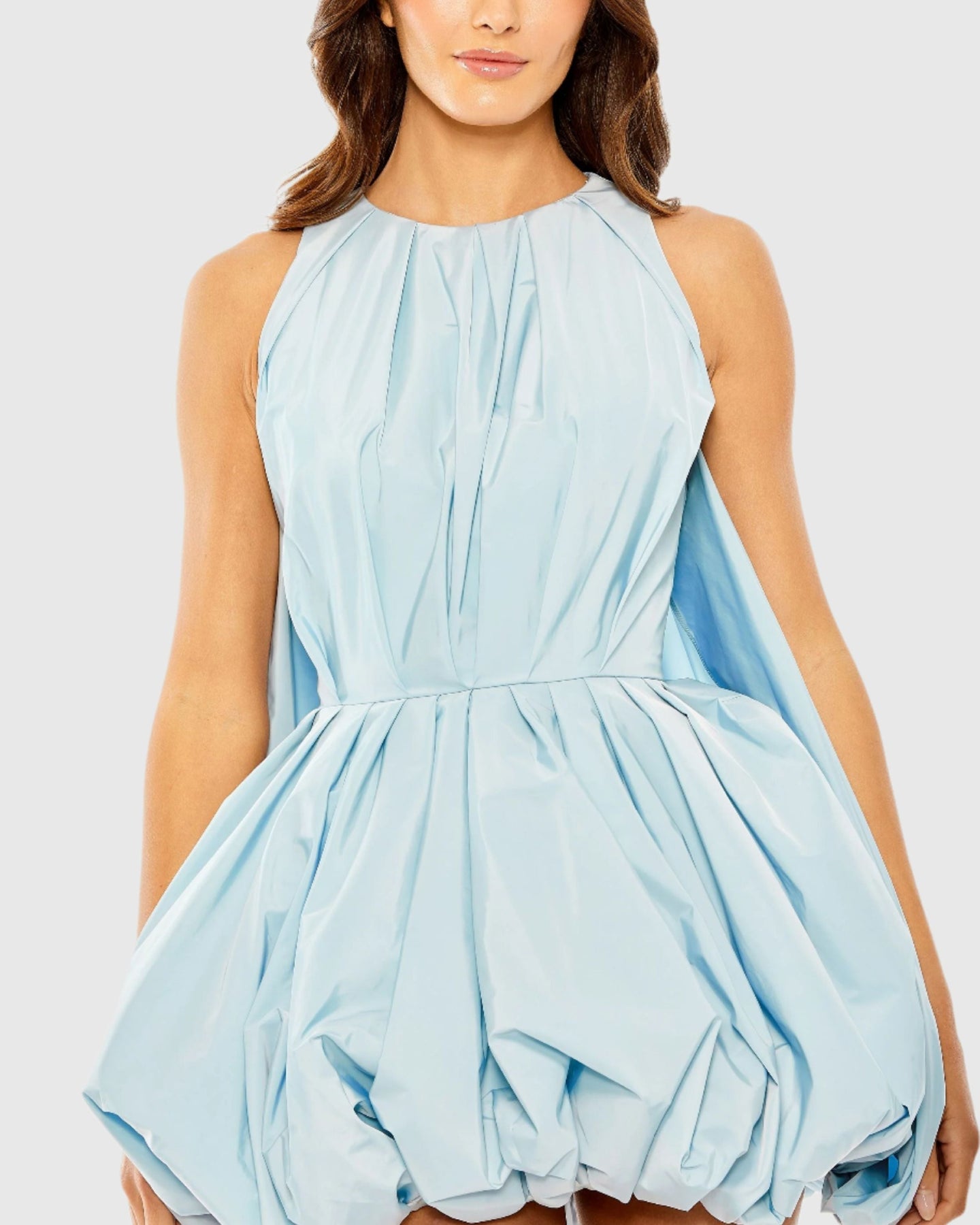 هذا الفستان القصير المريح والمثير من قماش التفتا بلون أزرق جميل، يُضفي لمسةً جريئةً على أي مناسبة. طوله القصير، مع رقبة عالية، يُضفي توازنًا راقيًا بين الأناقة والبهجة، بينما يُضفي تصميم الكاب الرقيق لمسةً من الإثارة والأناقة.