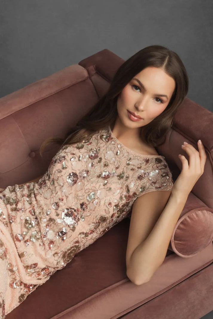 مع رقبة القارب الخالدة وأكمامها الرقيقة، ينضح هذا الفستان بسحرٍ أخّاذ. مثالي للمناسبات الرسمية والخاصة، ومن المؤكد أنه سيترك انطباعًا لا يُنسى.