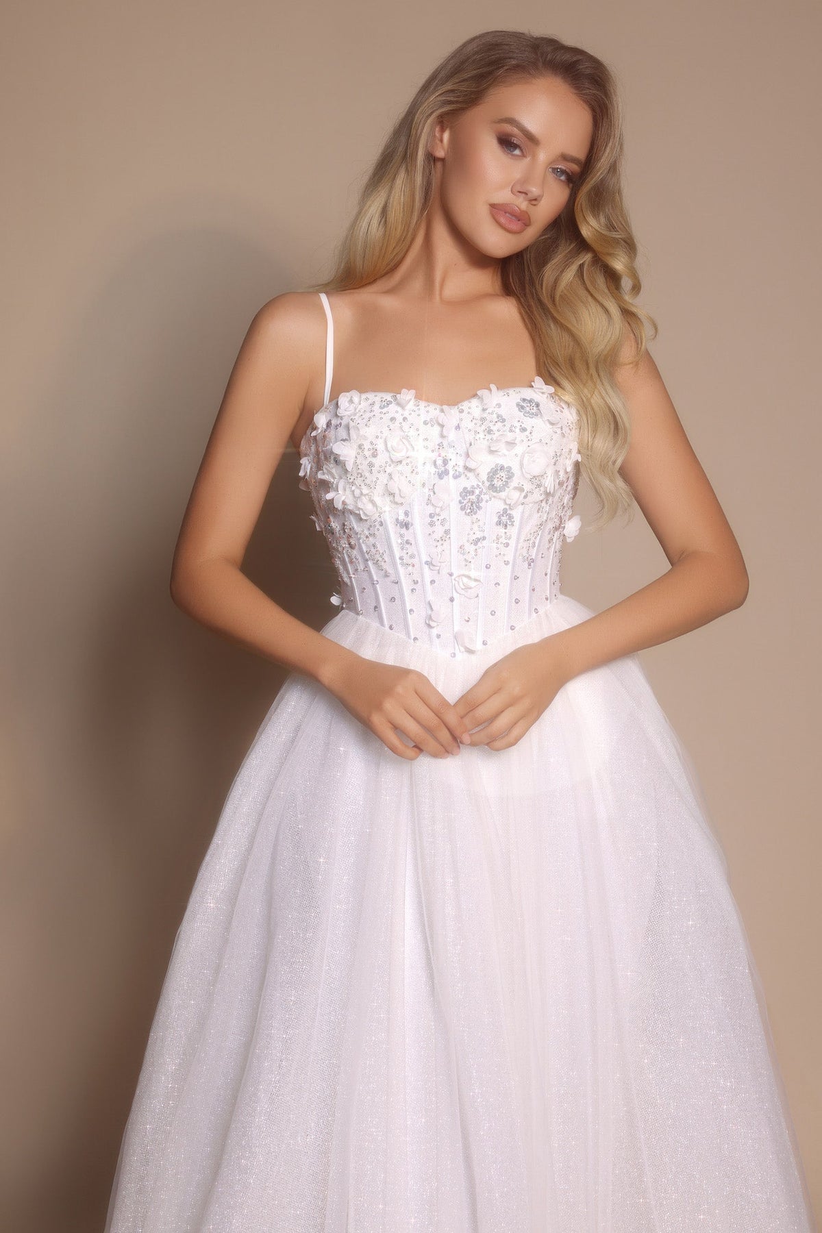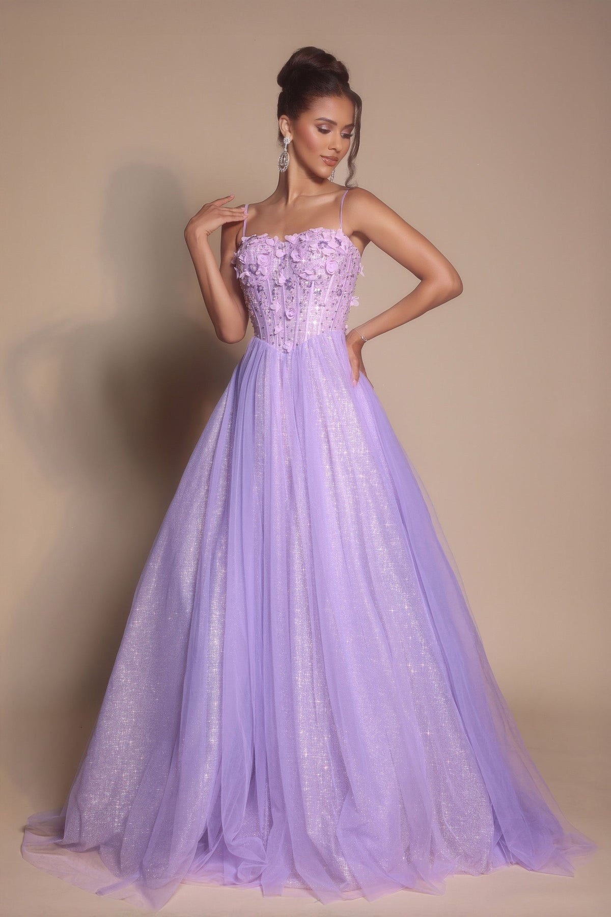 Flow into the evening with this playful long tulle dress, designed to turn heads. The sleeveless, strap style lets you show off your shoulders, while delicate beading adorns the top, adding just the right touch of sparkle. Lightweight and elegant, this dress moves with you, making every moment feel magical. Perfect for celebrations where you want to shine with a whimsical flair.