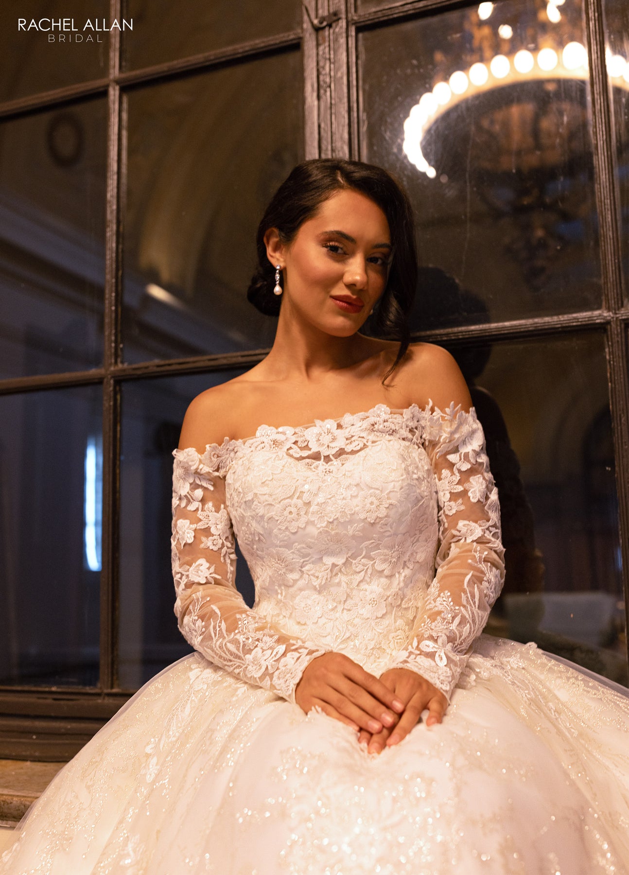 Step into the spotlight with the Rachel Allan RB3224 Dress, where bold elegance meets romantic tradition. Its off-the-shoulder neckline and long illusion lace sleeves command attention, while glitter tulle and intricate lace appliques ignite a subtle sparkle across the full ballgown silhouette. Delicate beading and a dramatic train amplify the drama, ensuring every step makes a daring statement. Available in Ivory Nude and White, this gown is made for the bride ready to own her grand and unforgettable moment.