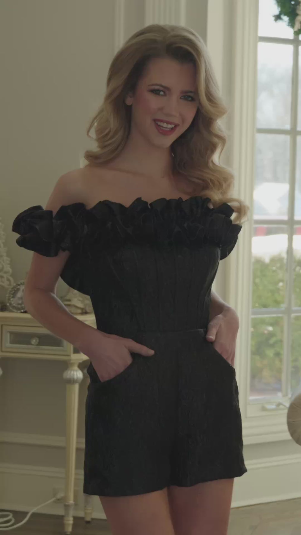 Make a statement in this playful off-shoulder jumpsuit that's anything but ordinary. The sleeveless design and daring open back create an effortlessly chic silhouette perfect for turning heads. Whether you're hitting the town or making a grand entrance, this unique piece delivers bold style with a fun, flirty edge. Dress it up or down—it's the versatile essential that breaks all the rules.