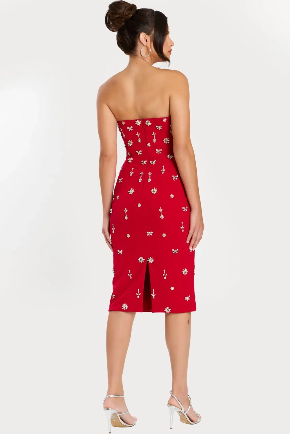 Dazzle in the Jovani 45249 Dress, a strapless midi that radiates glamour with its shimmering jewel embellishments. This show-stopping piece features a flattering silhouette designed to celebrate your best self, whether you're commanding the dance floor or making a grand entrance. Let your playful spirit shine in this stunning, head-turning creation.