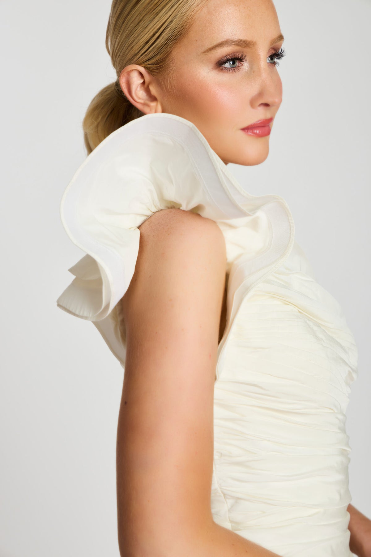 This expertly crafted Jovani 47823 dress features a striking one-shoulder design adorned with delicate ruffles, enhancing its elegant silhouette. The short length offers a modern, youthful appeal, while the intricate floral rosette detail adds a sophisticated touch of texture and femininity. Perfect for special occasions, this dress combines refined style with a flattering fit to ensure you stand out with confidence.