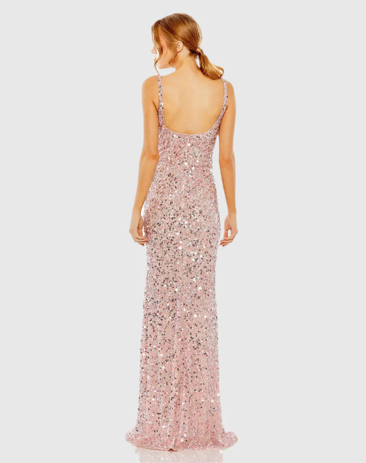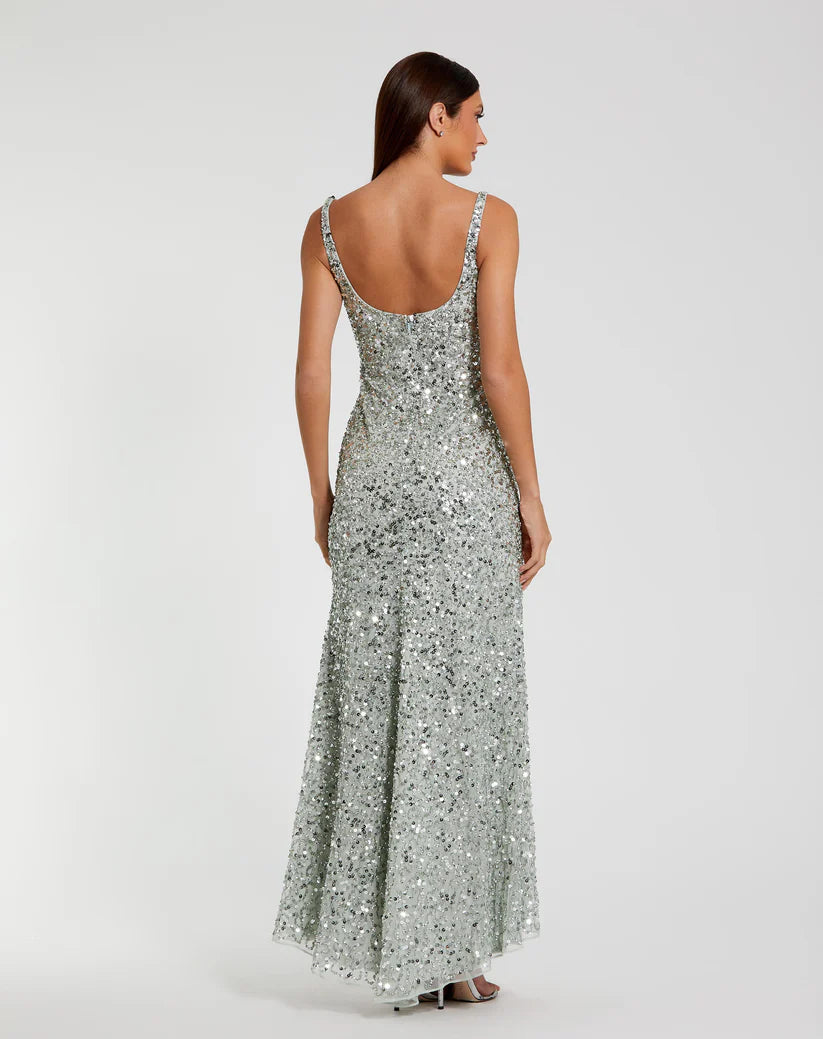 استعدي لتألقي بأناقة مع فستان ماك دوغال 10705! يتميز هذا الفستان الرائع بقماش ذهبي ناعم مزين بالكامل بالترتر، مما سيجعلكِ متألقة طوال الليل. يُضفي الظهر المنخفض لمسة من الجاذبية، بينما يُضفي خط العنق المربع لمسة كلاسيكية. مع سحاب خلفي لسهولة الارتداء وبطانة كاملة لمزيد من الراحة، يُعد هذا الفستان مثاليًا لأي مناسبة أنيقة.