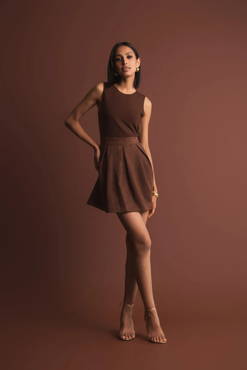 أطلقي العنان لعاشقة الموضة الكامن فيكِ مع فستان ماك دوغال 81071! يتميز هذا الفستان القصير بدون أكمام بمزيج فريد من القماش الشبكي والشمواه، مما يمنحه إطلالة أنيقة وجريئة. تصميمه على شكل حرف A وياقته العالية يجعله الخيار الأمثل لأي مناسبة. مع سحاب خلفي مخفي وتصميم مبطن بالكامل، ستبقين مرتاحة وأنيقة طوال اليوم. متوفر باللون البني الشوكولاتي، سيصبح هذا الفستان خياركِ الأمثل لإطلالة مرحة وعصرية.