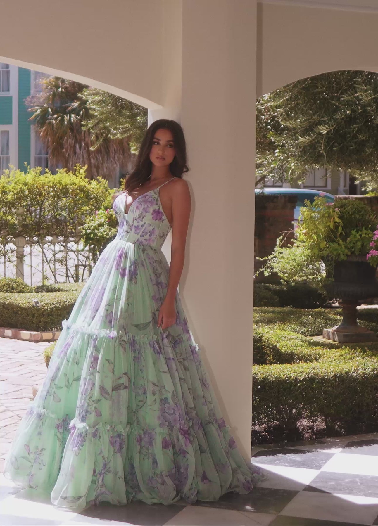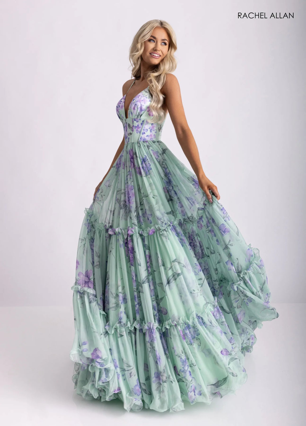 Embrace timeless elegance with this stunning Rachel Allan creation. The sweetheart neckline draws attention upward while delicate straps provide graceful support. A captivating flower print adorns the silhouette, adding romantic charm to your special occasion. The sleeveless design keeps you cool and comfortable, while the daring open back creates an unforgettable statement. This long dress flows beautifully, perfect for proms, galas, or any event where you want to feel confident and radiant.