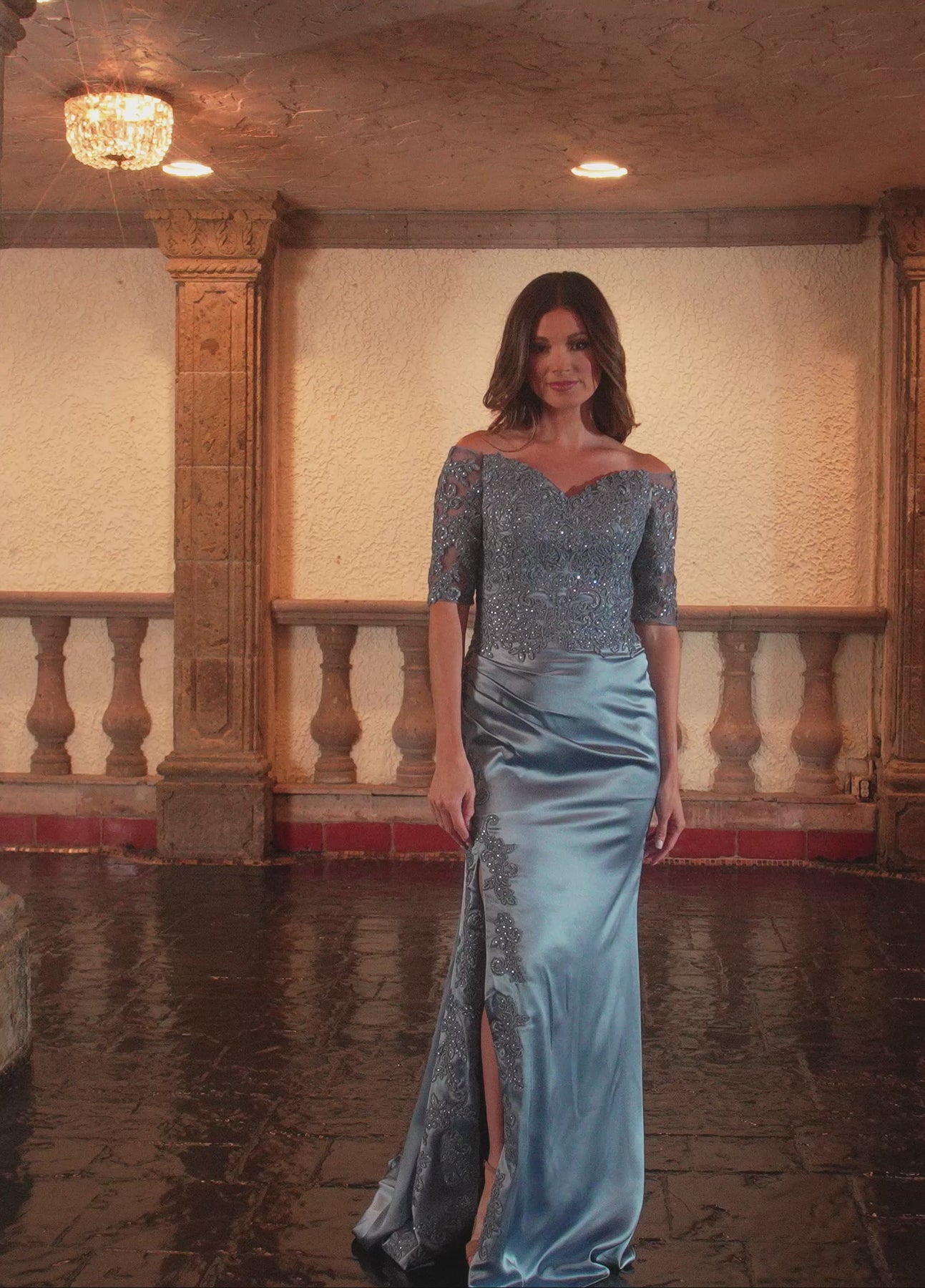 Make a bold statement in the Rachel Allan RB8150 Dress, crafted from luxurious stretch satin in slate or dusty rose. This daring gown features delicate appliqué and intricate beading that highlight the bodice and sleeves, while its off-the-shoulder neckline adds romantic allure. The thigh-high slit introduces a provocative edge, perfect for commanding attention at any formal event. Elevate your evening style with this striking blend of elegance and modern seduction.