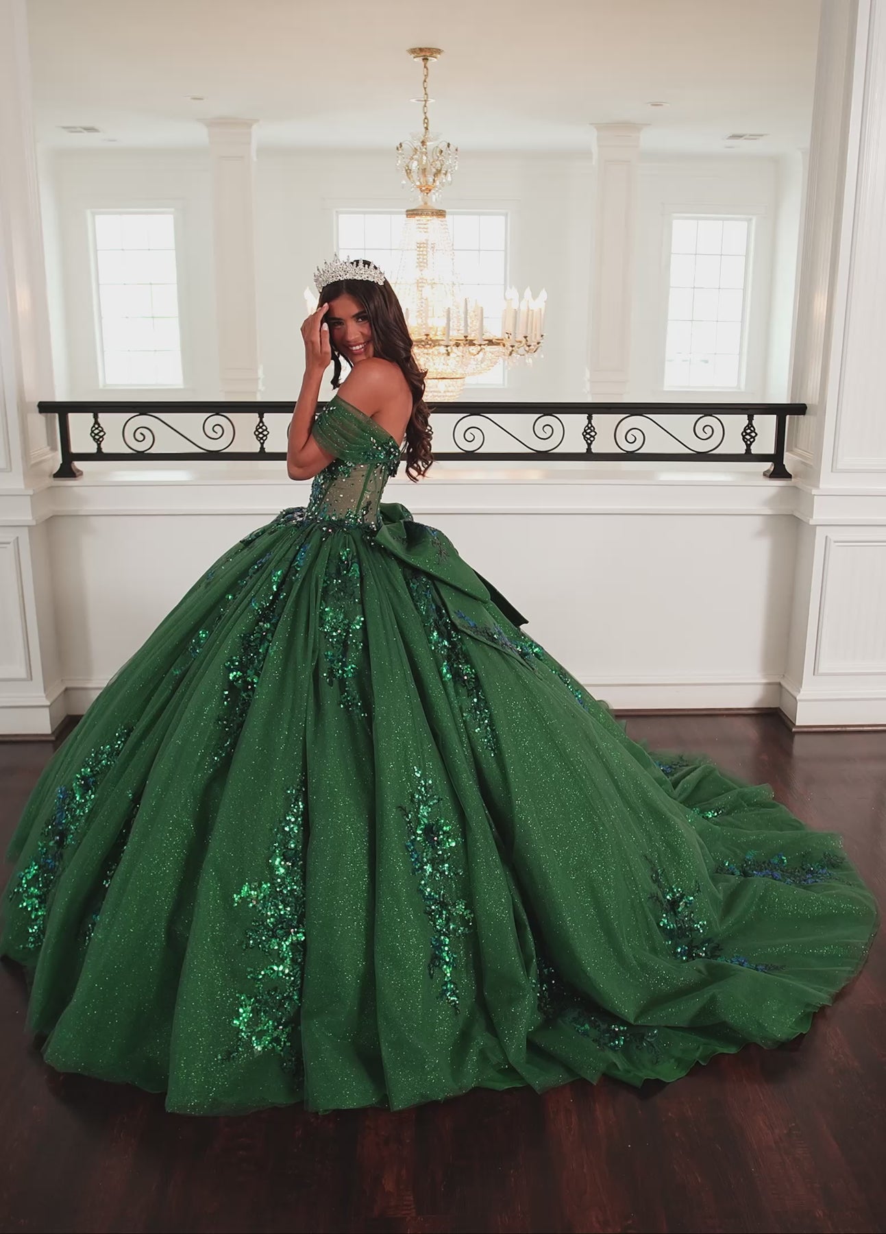 Get ready to dazzle in the Rachel Allan RQ2224 Dress! Its glittery tulle skirt sparkles with sequin appliqués and 3D floral beading, turning heads wherever you go. The off-the-shoulder neckline and fitted corset bodice celebrate your curves, while detachable straps, a bow, and a bodice liner let you mix and match your style. Perfect for quinceañeras or any grand occasion, this gown promises to make you shine bright and feel unstoppable!