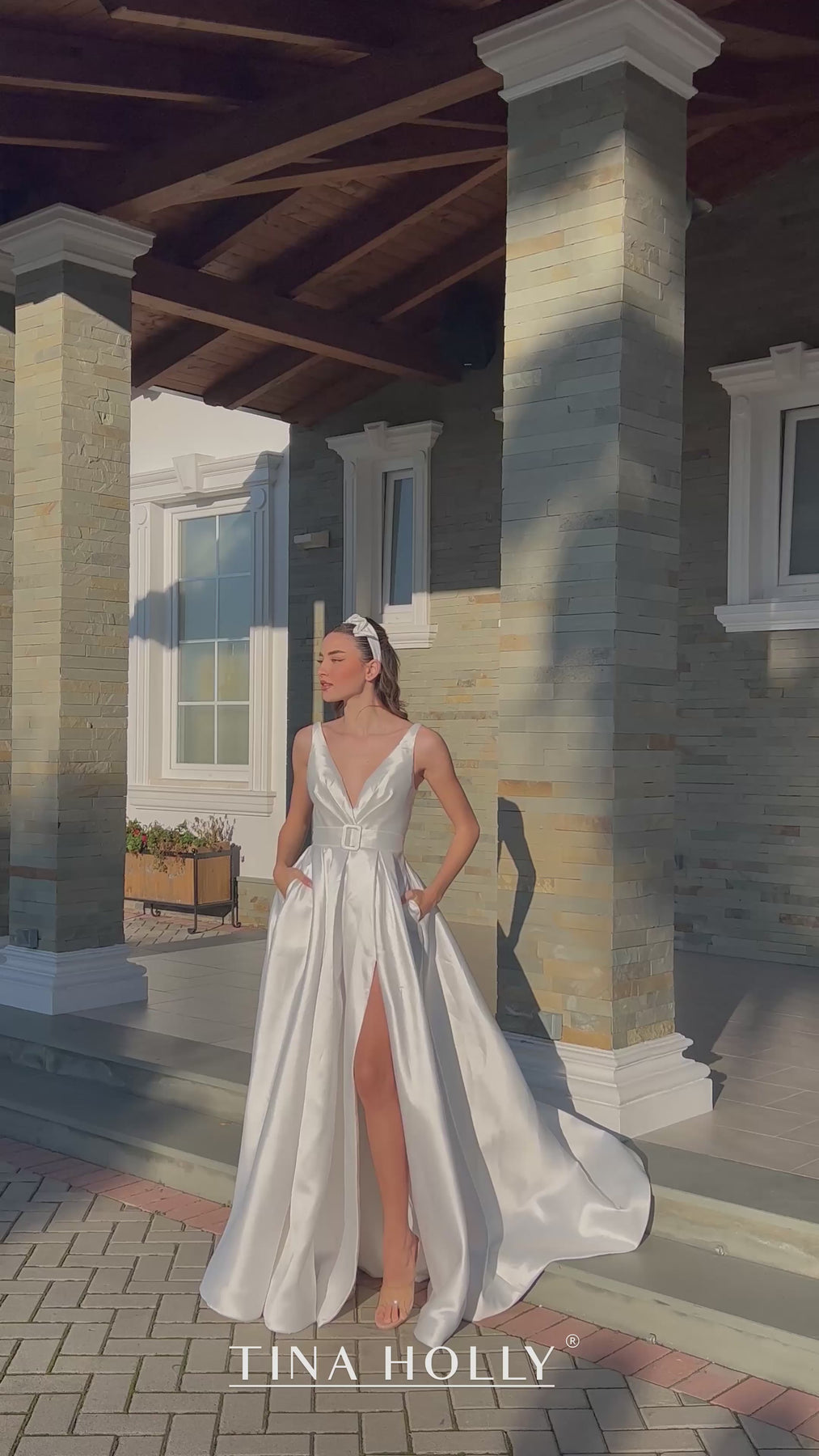 Make a stunning entrance in the Tina Holly BB209W, a breathtaking ball gown designed for your most memorable moments. This elegant long dress features a flattering V neckline and sleeveless silhouette that showcases your natural beauty, while luxurious satin fabric drapes gracefully to the floor. The dramatic high leg slit adds movement and sophistication, and an adorable waist belt cinches your silhouette with a touch of charm. Perfect for weddings, bridal events, or any occasion calling for timeless elegance, this unique gown combines classic romance with modern flair. You'll feel confident and radiant in every step.