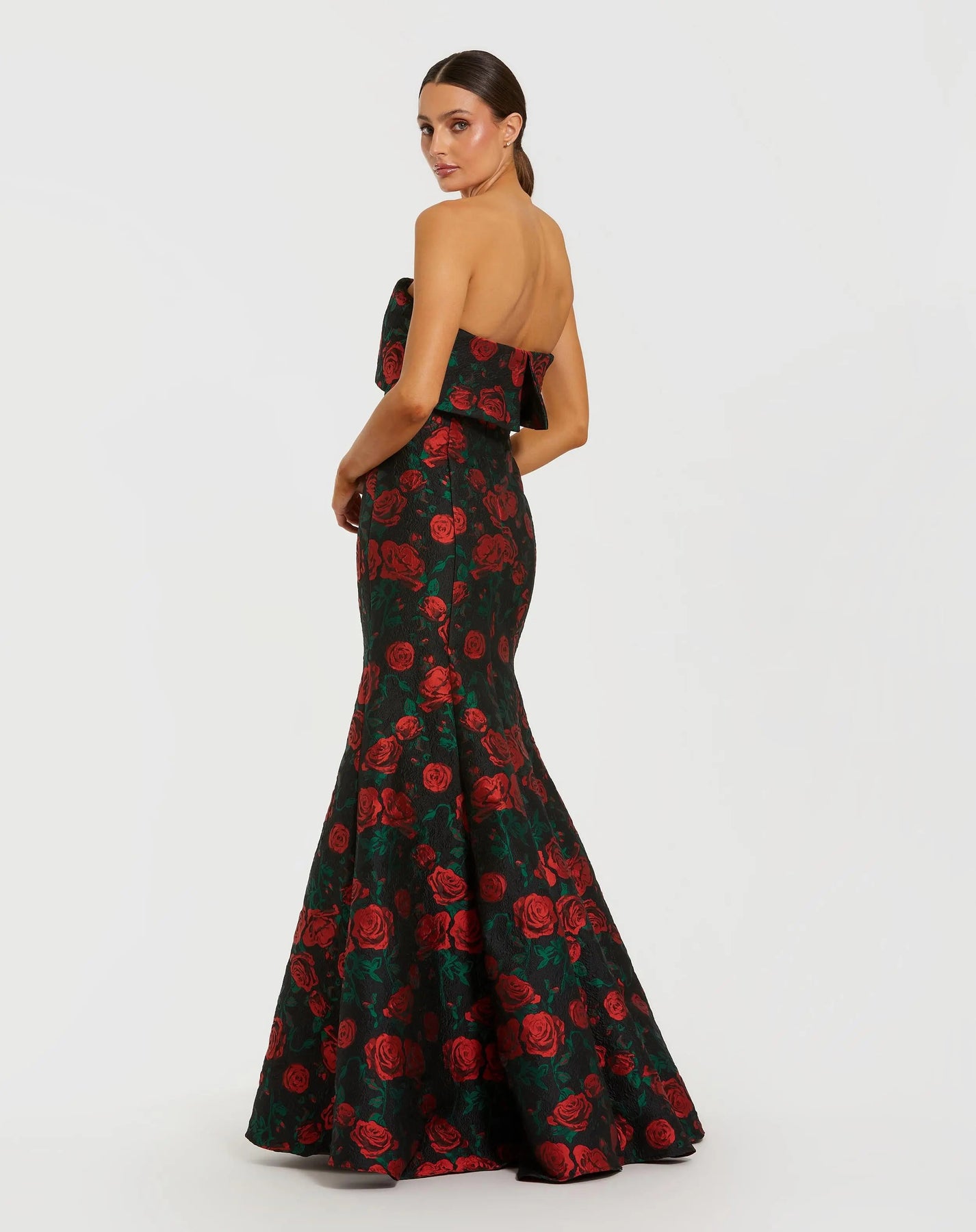 Black Strapless Floral Brocade Mermaid Gown