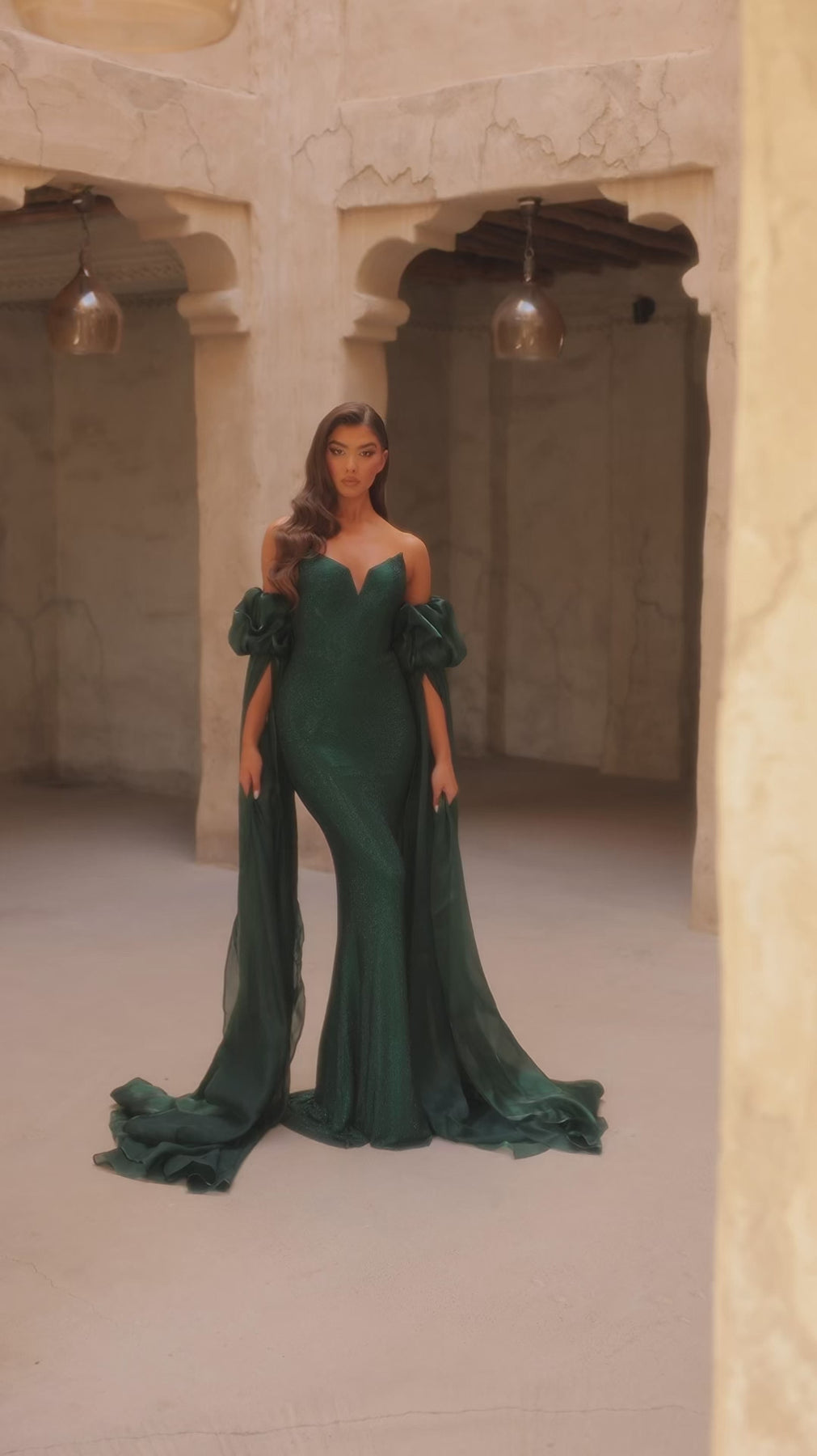 This playful long dress features an off-shoulder design with a charming sweetheart neckline that adds a touch of elegance and cuteness. The open back detail brings a flirty and sophisticated vibe, perfect for making a memorable entrance at any event. Its flowing silhouette combines grace with a fun, youthful spirit, making it an ideal choice for those who want to stand out with style and sweetness.