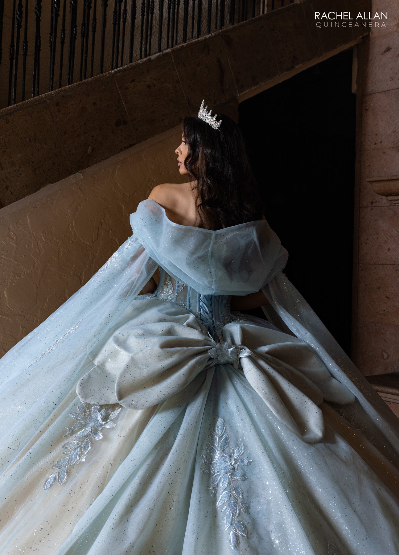 Step into a fairytale with the Rachel Allan RQ1166 Dress, where princess charm sparkles from every bead and pastel appliqué. Delicate 3D flowers add a whimsical touch, while the glitter tulle skirt floats gracefully, complete with a detachable train for dramatic entrances. The sculpted bow and sheer detachable sleeves let you play with your look, making this gown perfect for quinceañeras or any fantasy celebration ready to steal the spotlight.