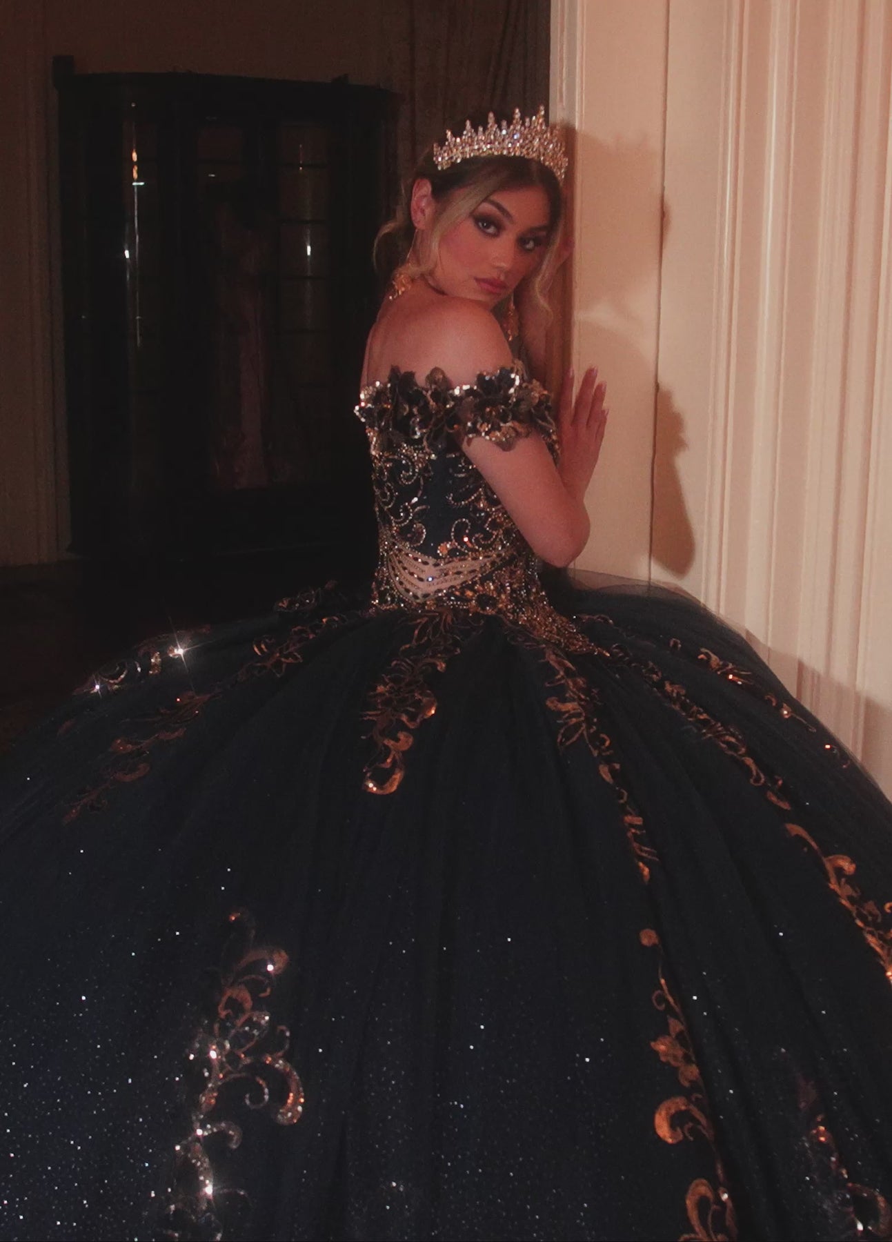 Step into the spotlight with the Rachel Allan RQ3145 Dress, a dazzling gown designed to turn heads. Its sparkling tulle skirt is bursting with glitter, sequins, beads, and charming 3D flowers for a look that’s pure magic. The off-the-shoulder neckline and fitted corset create a stunning shape, while the detachable bow adds a fun, regal flair. Perfect for quinceañeras or any big celebration, this dress will have you feeling like the queen of the party!