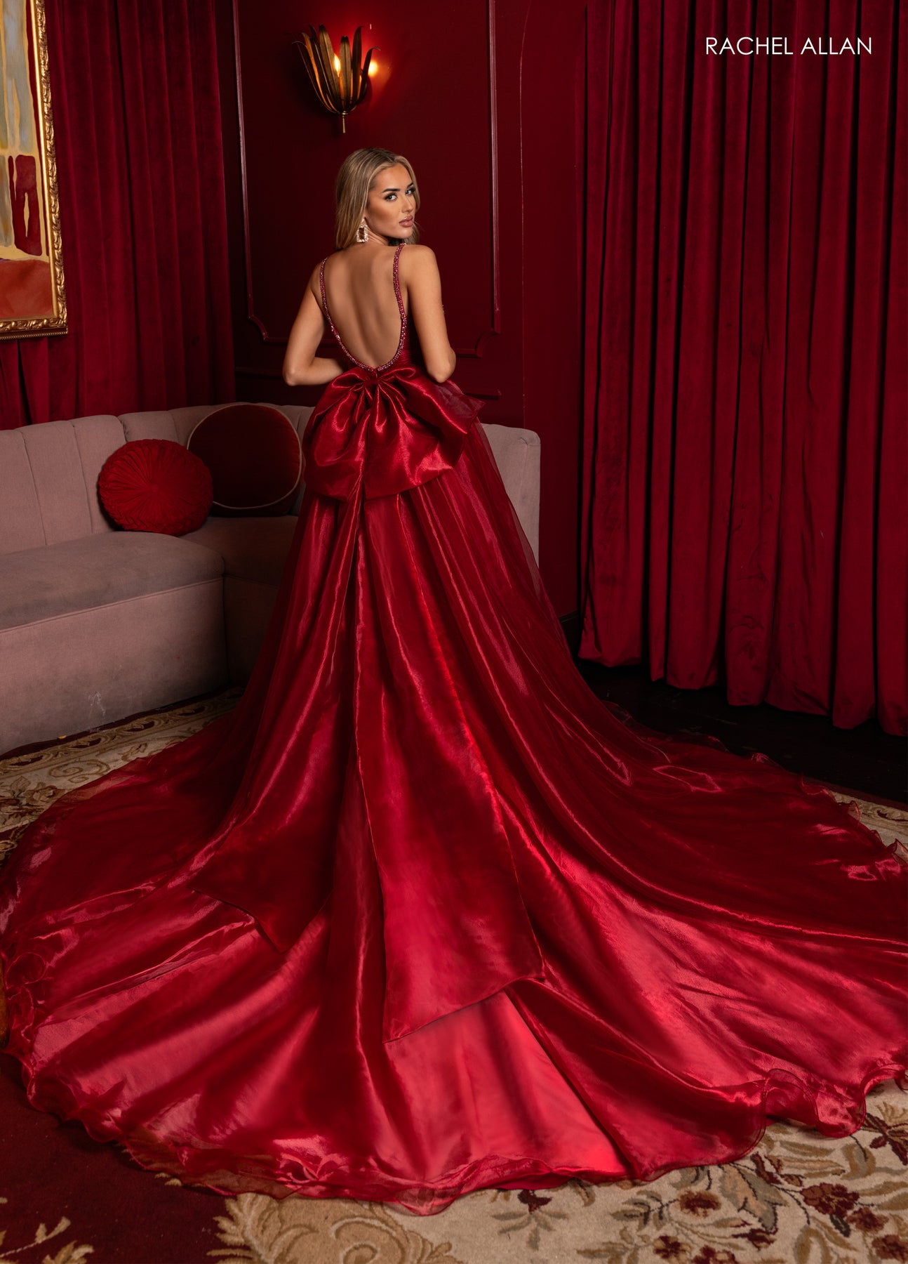 Radiate royal charm in style 50386, a breathtaking organza ballgown featuring a beaded bodice with crystal sparkle and delicate straps. The voluminous skirt flows into a dramatic train, finished with a show-stopping oversized bow at the back. Available in Red Fuchsia for fiery romance or Lavender for soft enchantment—perfect for pageants, quinceañeras, or unforgettable entrances.