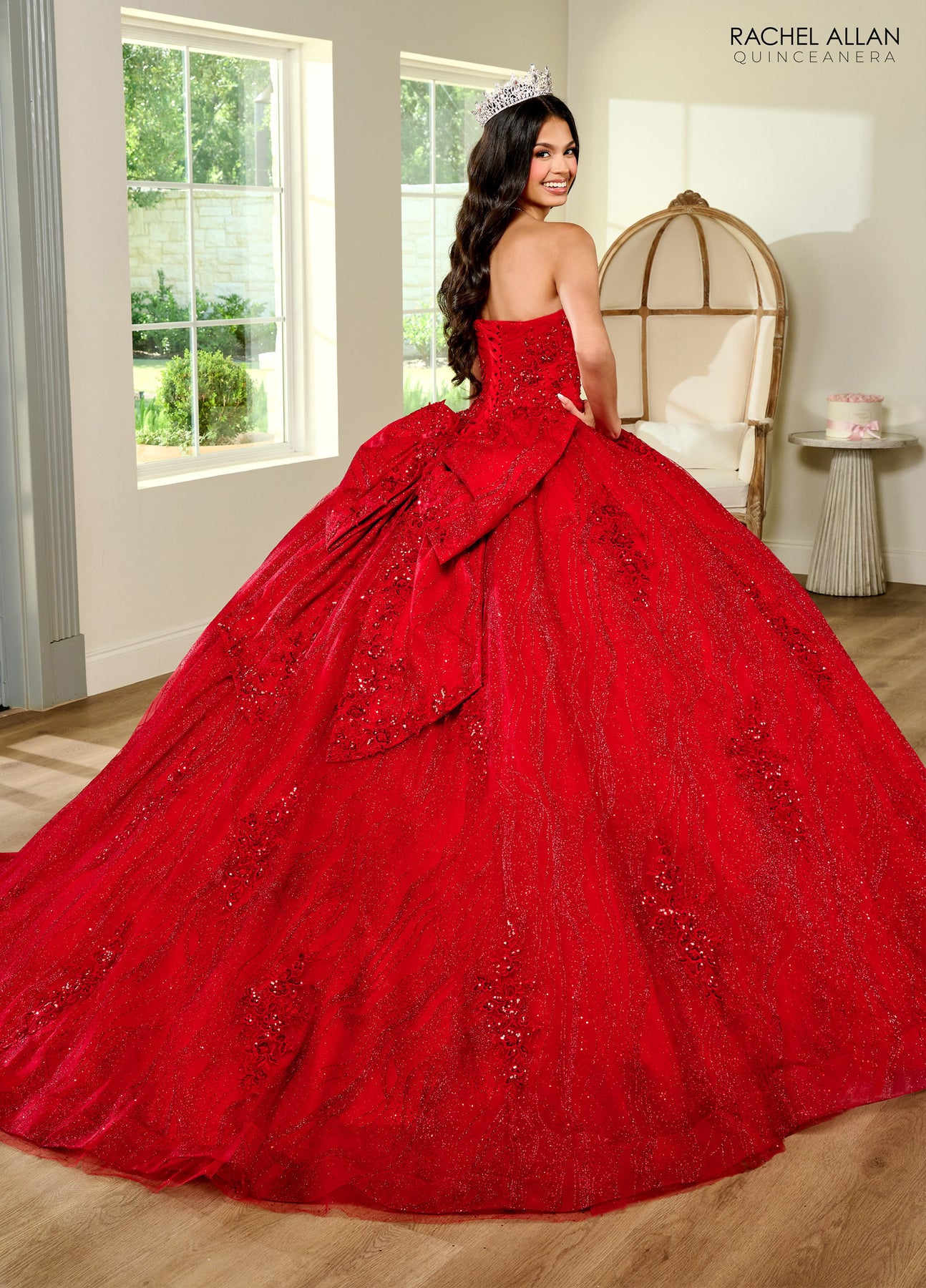 Make your Quinceanera unforgettable with the Rachel Allan RQ1135 Dress! This glittering tulle ball gown dazzles with intricate applique and beading that catch every eye. Detachable 3/4 bubble sleeves offer versatile coverage, and the peek-a-boo back with lace-up detail adds a playful, unexpected twist. Step into sparkle and glamour that will have everyone talking all night long!