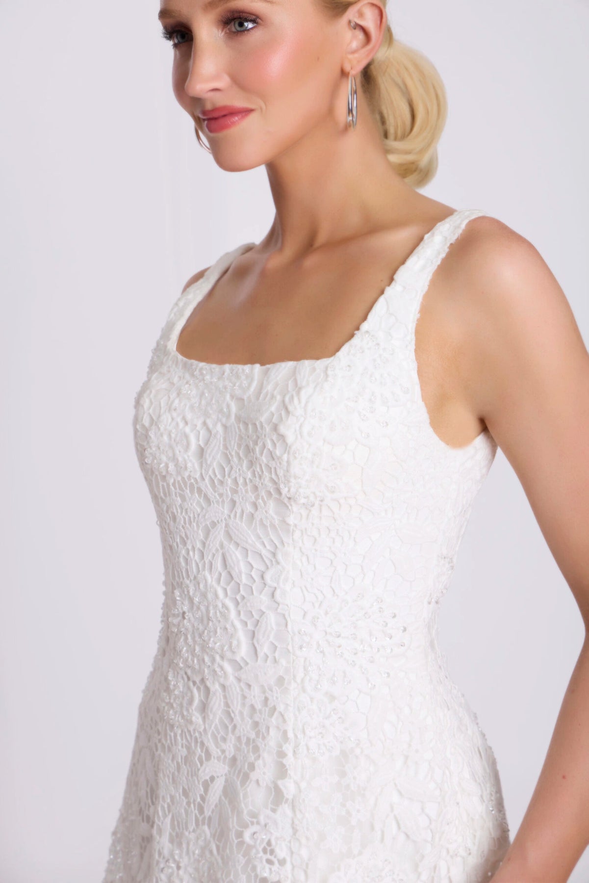 Step into charm with the Jovani 45136 Dress, a playful off-white lace creation featuring a flattering square neckline. Its delicate lace and light hue make it perfect for sunny days or special occasions where you want to feel effortlessly stylish and fun.
