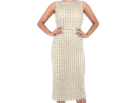 A flirty take on the polished sheath, this striking midi dress is dripping with faceted bead fringe. The dazzling dress is an innovative and chic way to don sparkle, cut in a sleek, fitted shape and patterned with sequin checks filled in with pearlescent beads. Wear it for weddings, work events or cocktail parties.