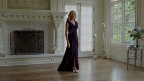This matte jersey MARSONI BY COLORS M343 Dress features a daring V-neckline with cap sleeves, accentuating the shoulders with bold elegance. The ruched bodice adds texture and intrigue, while a subtle sparkle detail injects an unexpected touch of glamour. Perfect for standing out, this gown combines sleek comfort with confident allure.