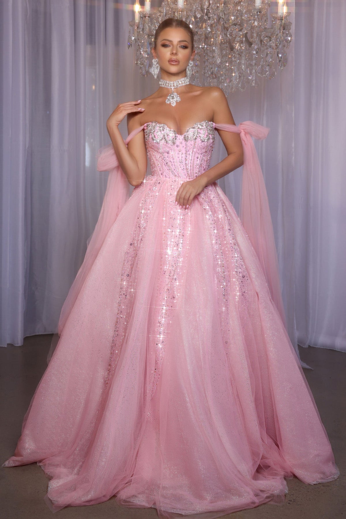 Step into the spotlight with the Portia and Scarlett PS26030 Dress, a dreamy ball gown made from soft tulle that twirls with every move. Its sweetheart neckline and off-the-shoulder sleeves add a flirty touch, while the corset detail shapes your figure perfectly. The hidden zipper ensures a smooth fit, so you can dance the night away feeling fabulous and free. This dress is your ticket to an unforgettable evening filled with charm and grace!