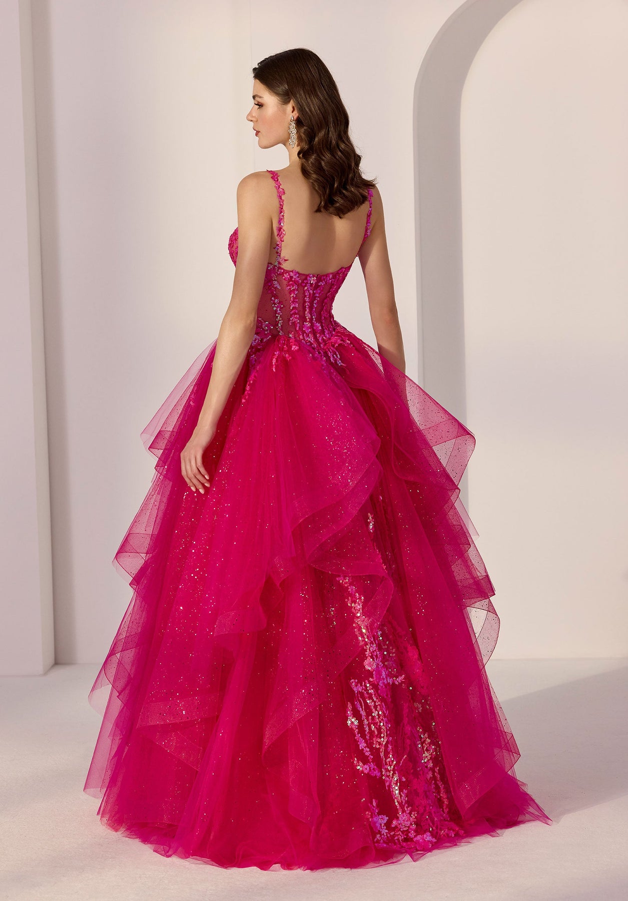 The Morilee 49278 Dress is a stunning ball gown that combines elegance with modern flair. Featuring delicate tulle fabric that creates a dreamy, voluminous silhouette, this A-line design flatters every figure beautifully. The distinctive cat eye neckline adds a contemporary edge, while the supportive straps ensure comfort throughout your special occasion. Perfect for proms, galas, or formal events, this dress makes you feel confident and radiant. The flowing tulle skirt creates graceful movement with every step, making this piece an unforgettable choice for your most important moments.