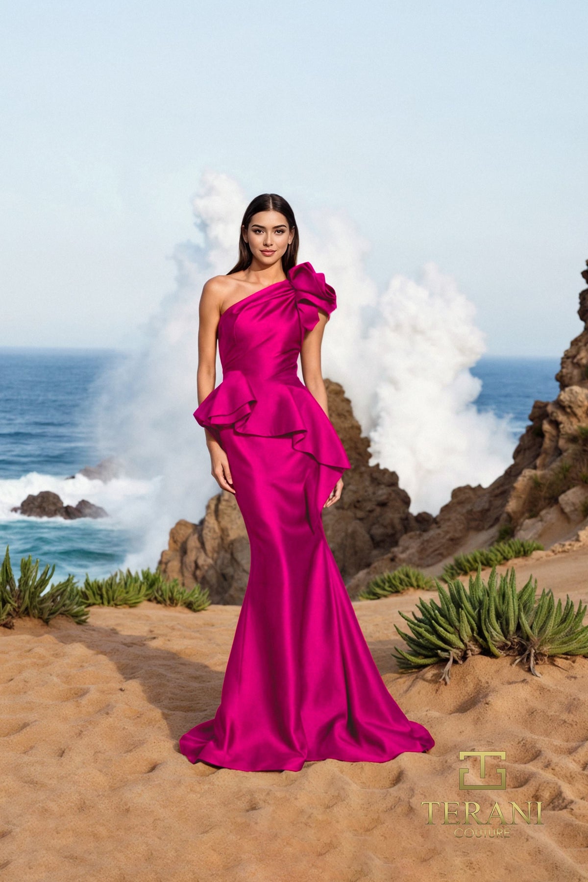 Slip into pure elegance with this stunning Terani Couture sleeveless dress! Crafted from luxurious taffeta, it features a chic asymmetric neckline that catches every eye. Choose from five gorgeous shades—emerald, fuchsia, red, navy, or black—to match your mood. The secure hook and eye closure paired with a back zipper ensures a flawless fit all night long. Perfect for cocktail parties, galas, or any occasion demanding show-stopping style!