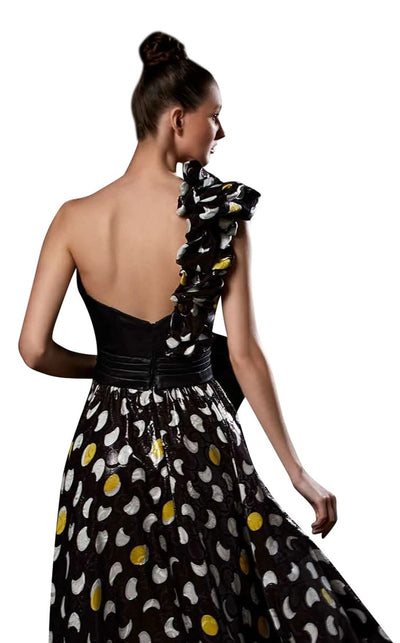 Step into the spotlight with the Ziad Germanos ZG76, a show-stopping gown that's equal parts glam and fun. This luxe piece combines shimmering sequins with silky satin, creating a delightful contrast of textures that catches every light. The chic one-shoulder neckline and playful polka-dot pattern give classic elegance a modern wink, while the flowing A-line skirt with a daring slit lets you move with confidence and flair. Finished with a discreet back zipper, this dress wraps you in pure sparkle—because why blend in when you were born to dazzle?